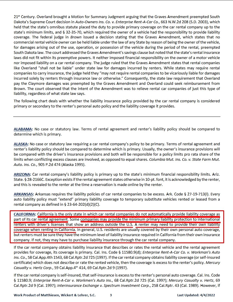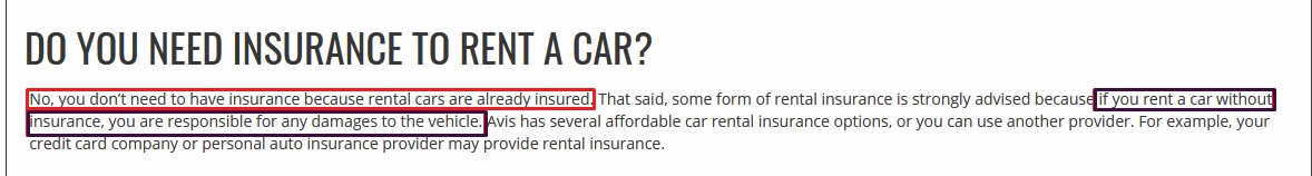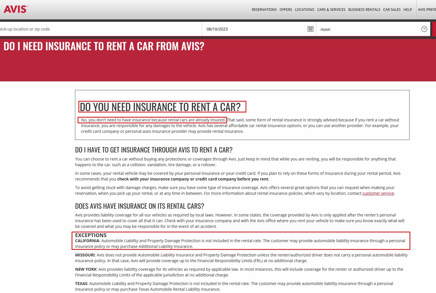 When you rent outside the US (NZ/Australia/UK) its an excess reduction you can buy but there is basic insurance with the car (with a $5000 excess) which your Travel insurance will cover.