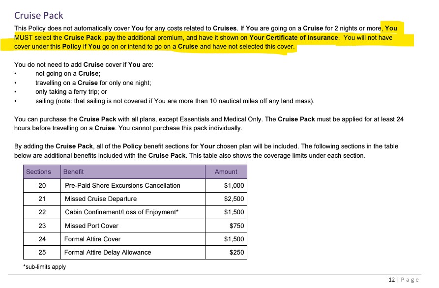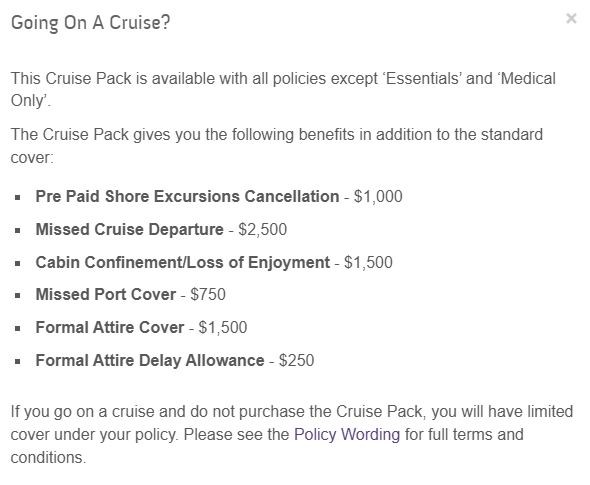 I need to find out from them if the cruise add-on is compulsory (I can't find that anywhere). I'm not worried about extra cover for Formal Attire, missing a Port Stop/excursion.