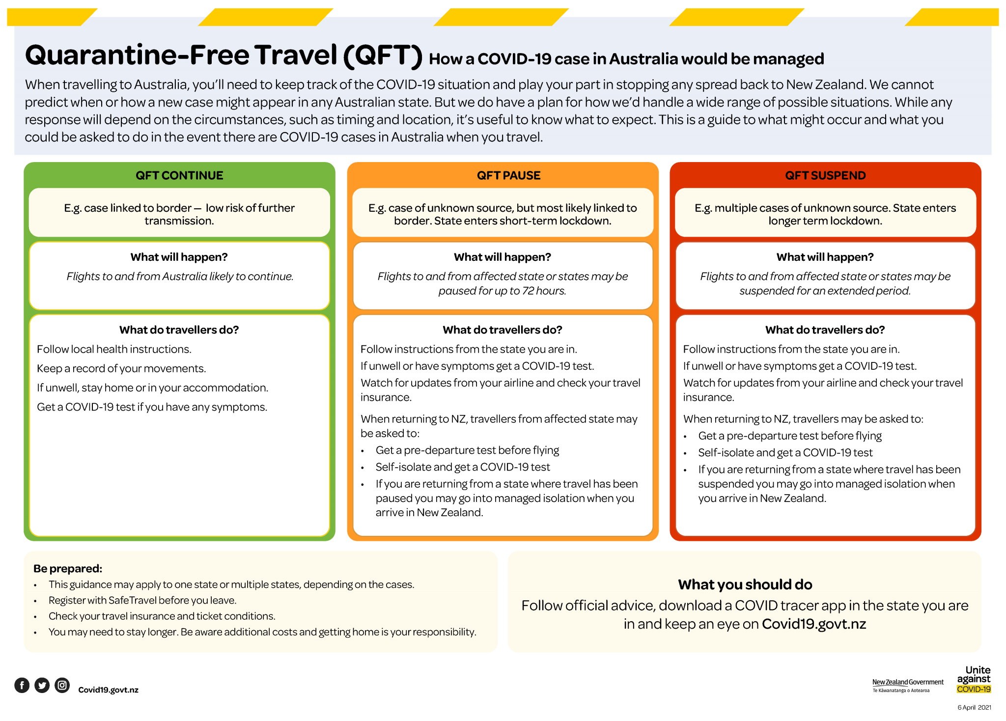 “Just as we have our alert level settings for managing cases in New Zealand, we will also now have a framework for managing New Zealanders in the event of an outbreak in Australia, which involves three possible scenarios: continue, pause, suspend,” Jacinda Ardern said.