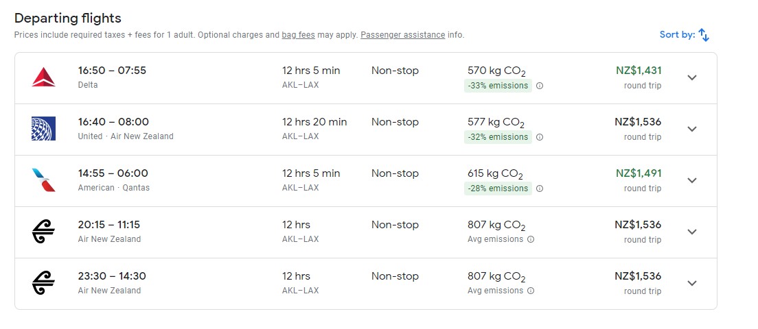 AirNZ's 777 is a much roomier aircraft but wow, the emissions are significantly higher and presumably so are their costs.
