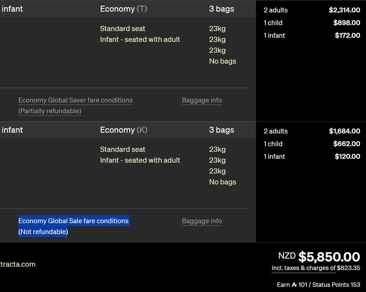 I am 90% sure they will get their visas but want an option to cancel and refund the tickets if they don't. Air New Zealand has really 3 main classes of fares: