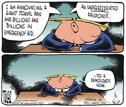 Apart from his monotone presentation and his truly awful choice of words he interspersed his prepared speech with, I would be outraged if I was an American that he used the occasion not only to announce measures to deal with the virus outbreak but also as a sort of campaign speech.