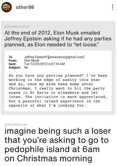 Meanwhile Elon you mean to say Trump with his bombing of Iran, wanting to annex Greenland, Canada, Trump Gaza ( vacant possesion) , kidnapping etc is 'not radical'