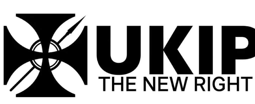 Nigel Farage's new UKIP logo proposal I kid you not. They submitted this one after their last attempt with a spear and sword was knocked back and they removed the sword. The world war two era military cross common in many german military formations at that time: