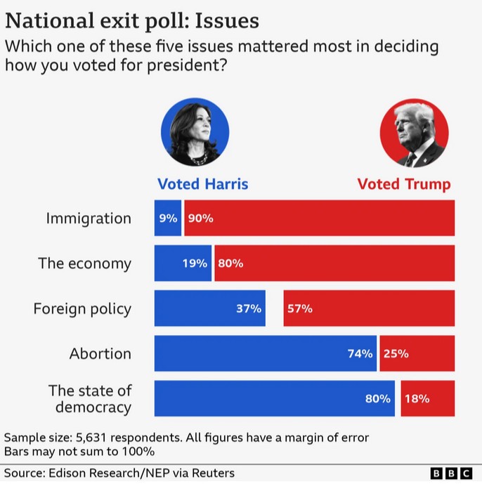 True, but the key issue was the economy. The lower end suffers, and that been globally not nationally. Read an article today why Lations etc voted for Trump. Tax cuts. To their credit thats more important than anything else. But if tariffs come into play (another story) then tax cuts may cover the tariffs, hence no real tax cuts.