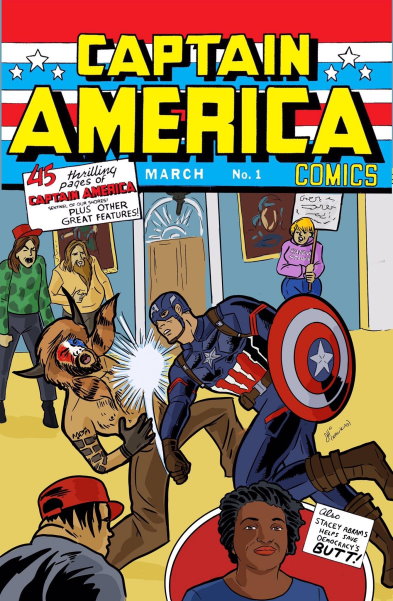 Some of you know Captain America's first comic book cover. Below the original and an artist's reimagination of it.