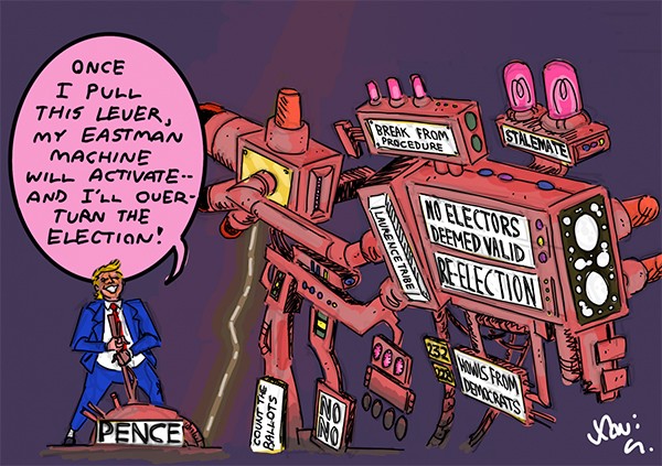 kingdragonfly: And speaking of villainous, John Eastman is the news again. Before encouraging the Trump's coup, he questioned whether Democratic vice presidential pick, Kamala Harris, could legally become president over her parents’ citizenship status despite being born in the U.S.
