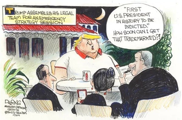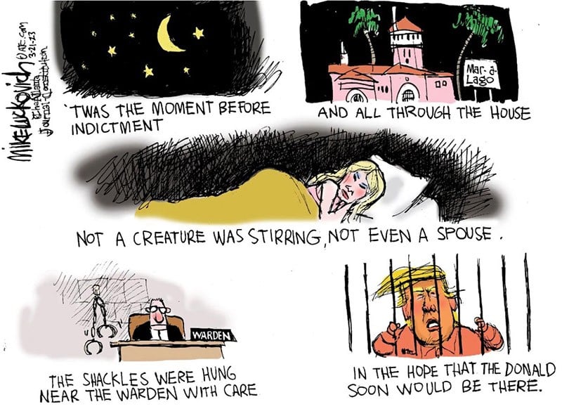 "Trump makes former president Richard M. Nixon look like a saint, and I’ve been waiting for Trump’s indictment like a kid waiting for Christmas,” Luckovich says.