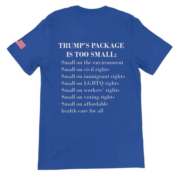 He sought to use the phrase on the front of T-shirts with a list of Mr. Trump’s positions on the back. For instance: “Small on civil rights.”