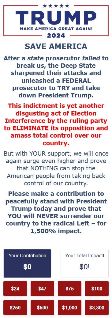 Predictably, Trump was already fundraising off the indictment on Thursday night.