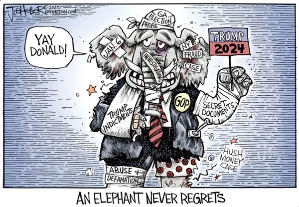 Trump is dumb. He is also lucky. He started off with a silver spoon and good connections and they have protected him from his stupidities ever since. But because he is dumb and has always got away with things, he isn’t very good at covering his tracks. Thanks to his talent (maybe the only one) for screwing himself, he is currently doing Jack Smith’s work and thoroughly miring himself in his lies, inconsistencies, and inability to see the bigger picture. He is slow walking into his cell and closing the door behind him. Even he can see this but he lacks the wit to stop it. He has never been able to comprehend the mysteries of chess and he is the prosecution’s greatest asset, a mushy dumb loser who can’t understand why he can’t get off the train.