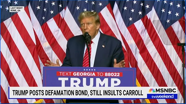 At a rally in Georgia on Saturday night, Donald Trump launched a fresh attack on writer E. Jean Carroll that may hand the New York writer's lawyers reason to file a new lawsuit against him as well as kill the $92 million appeals bond he just posted on Friday.