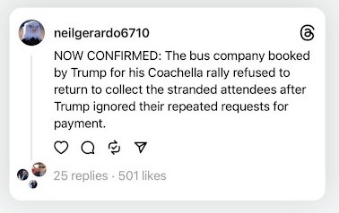 It took several hours to get everyone there and then after they'd heard his awful rhetoric, they went to leave and...there were no buses.
