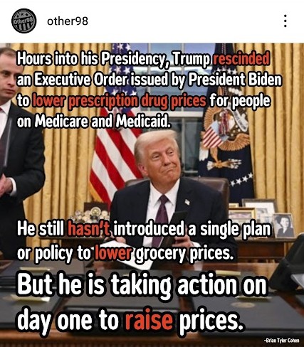 This reminds me of a meme I saw (which I can't find now) from a disabled veteran who voted for him (but before he became president), seething that Trump was going to remove Biden's price cap on insulin and other medications.