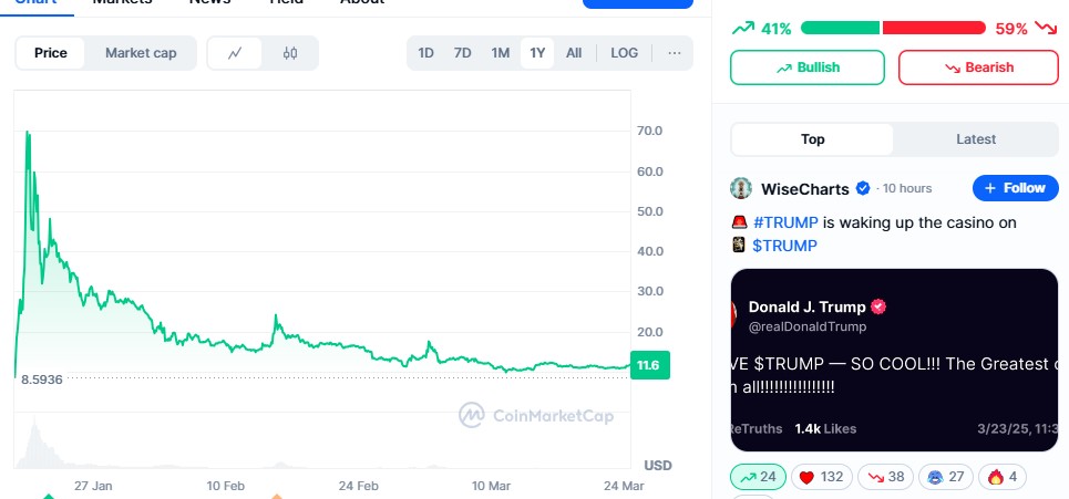 So Trump releases a tweet to boost his $Coin grift for another rug pull, to cheat his followers.