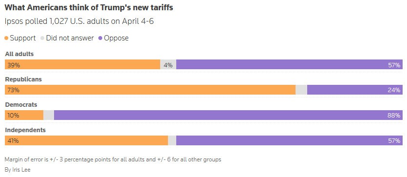104% tariff now on China. Good luck shopping at Walmart, Best Buy, Home Depot etc