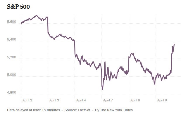 The NY Times - Trump Backs Down on Reciprocal Tariffs for 90 Days (free unlocked link)