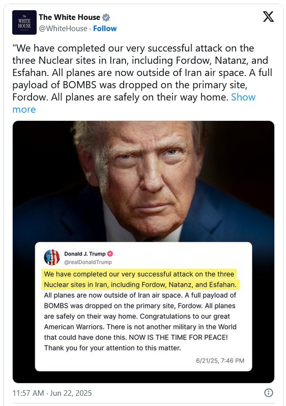 The Washington Post - U.S. warplanes carry out strikes on three nuclear sites in Iran, Trump says, calling the attack ‘successful’ (free unlocked link)