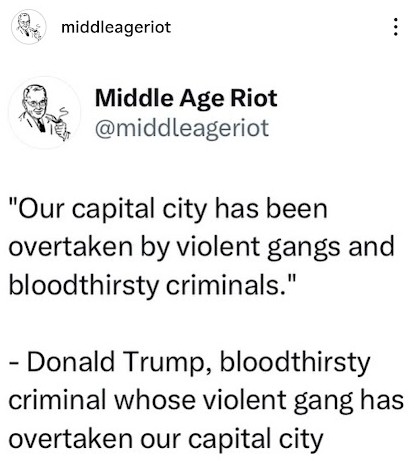 More concerning is the precedent being set (especially when the crime rates in DC are actually trending downward), and the talk about deploying the military (which I suspect is just talk). Also lumping homeless and violent criminals together, as if there is a single solution that can deal with both problems.