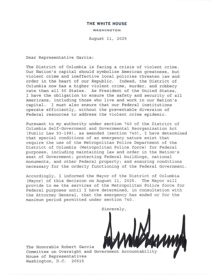 The Washington Post - Trump announces federal takeover of D.C. police, deploys National Guard to fight crime (unlocked link)