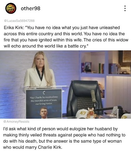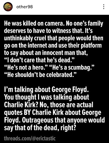 As for Charlie Kirk - here's a very pertinent post I saw today: