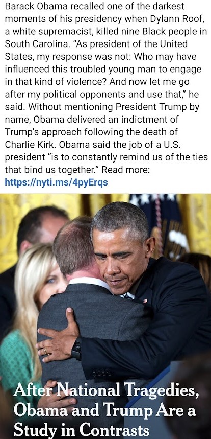 If you think about it (and I remember when this shooting happened), I don't recall Obama blaming "the radical right" or anyone like this for that awful shooting. Yet it's perfectly fine for the orange buffoon to point the finger - without evidence - at the perceived perpetrator of Kirk's murder ("the radical left") without a shred of proof or evidence, and his idiotic base just laps it up.