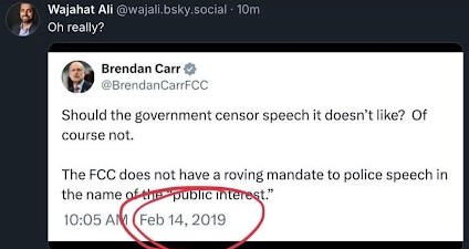 kingdragonfly: Ironically after being tapped by Trump to chair the FCC, Carr said on social media that one of his first goals would be: “We must dismantle the censorship cartel and restore free speech rights for everyday Americans.”