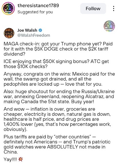 Those numbers mean that Trump is now slightly less popular than Joe Biden was at this point in his first term (-11.5 net approval) and less popular than himself during term one (-12.0 net approval).