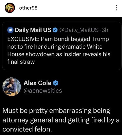 Getting my head around Trump pissing off Bondi, the person who could likely spill the beans on him.