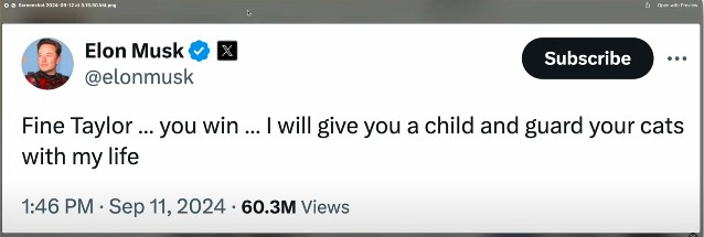 Even the being kind to the planet motivation is in conflict with the new Elon.