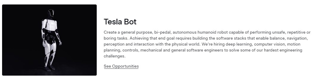 kingdragonfly: They are developing a humanoid robot called Optimus, also known as the Tesla Bot.