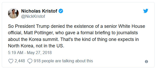 To attend the briefing - about the status of President Trump's possible summit with North Korean leader Kim Jong Un - reporters had to agree to leave the aide's name out of their stories.