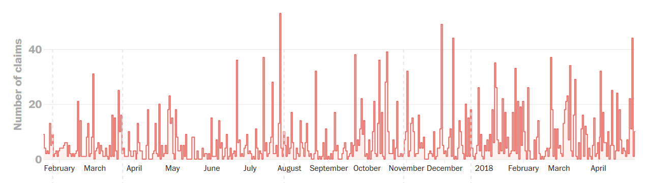 The president frequently claims, without evidence, that journalists make up sources. This is widely recognized to be a fib at best and a lie at worst.