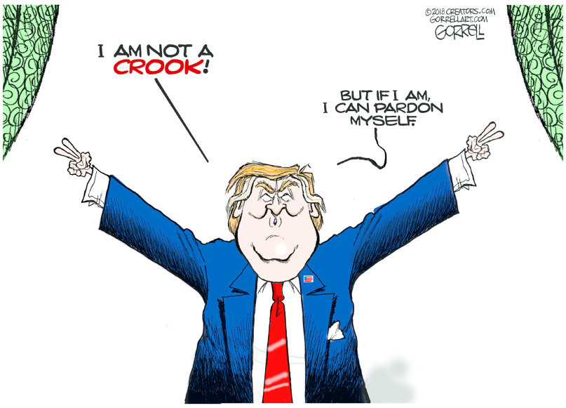 Her yes, him no. By the logic of his recent pronouncements he could strangle her in bed (after grabbing her pussy, of course), pardon himself, and carry on as before. Nothing beats absolute power.