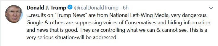 President Donald Trump has made more veiled threats toward Google and other web platforms, after tweeting this morning that Google had “rigged” its search results to suppress positive news about him.