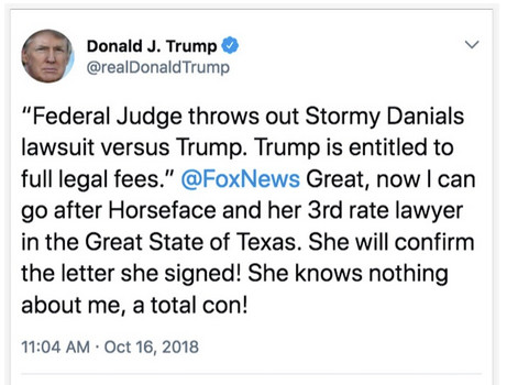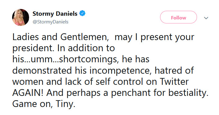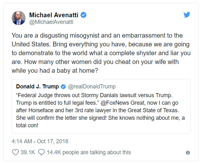 Michael Avenatti, the lawyer for Stormy Daniels, reacts to President Donald Trump's tweet in which he refers to Daniels as a "horseface," and threatened to "go after" her.