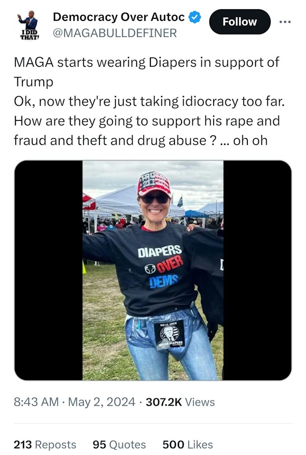 We all have heard of stories about DJT wearing diapers. MAGA is now incorporating it to their lives: