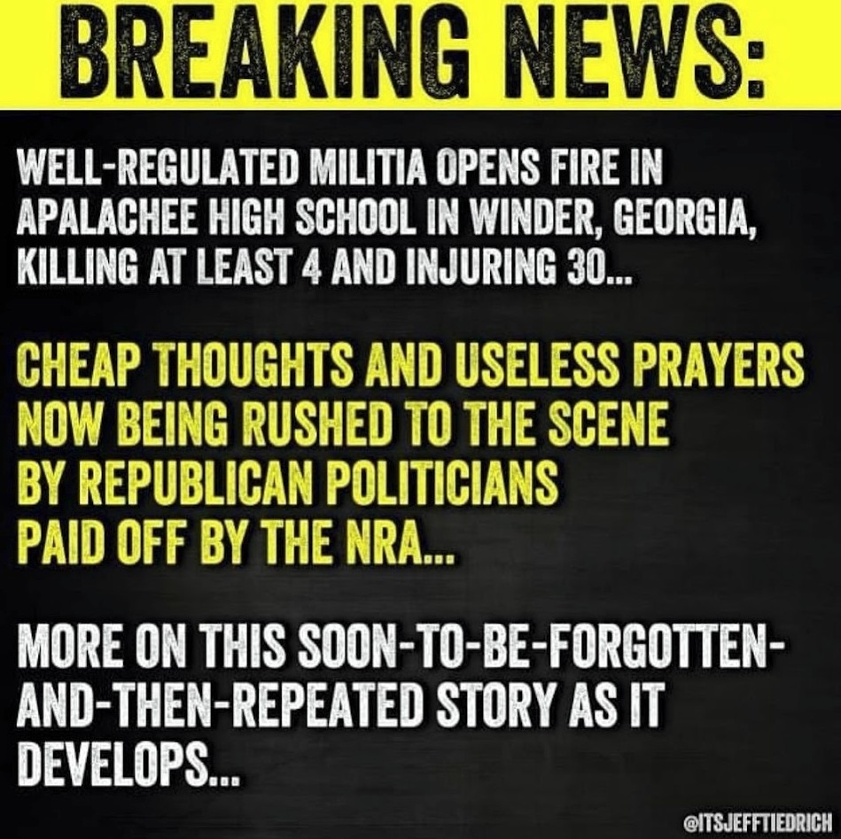 Republican Representative Marjorie Taylor Greene has been slammed after responding to the school shooting in her home state of Georgia with a simple call for prayers without mentioning the issue of gun violence and her longstanding opposition to gun control.