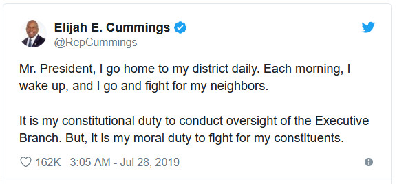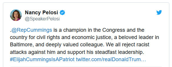 Democratic House speaker Nancy Pelosi has accused US President Donald Trump of "racist attacks" in his tweets about an African-American lawmaker, Elijah Cummings, a prolific critic of Mr Trump.