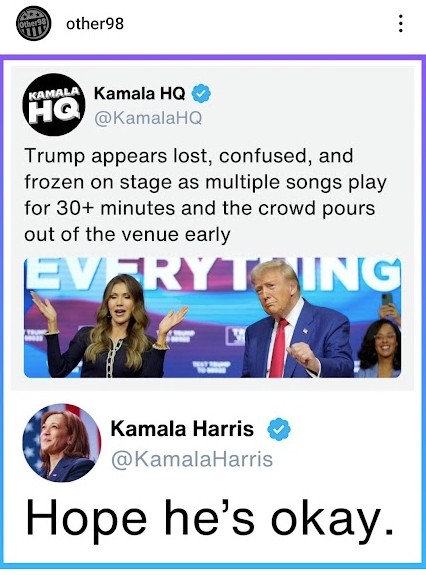 She's definitely trying: https://edition.cnn.com/2024/10/15/politics/harris-trump-unhinged-analysis/index.html