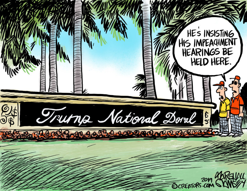 Third, in an unprecedented display of chutzpah*, Trump announced that next year’s Group of Seven summit would be held at his Doral golf resort near Miami, one of the clearest instances yet of self-enrichment and unconstitutional receipt of emoluments. ...
