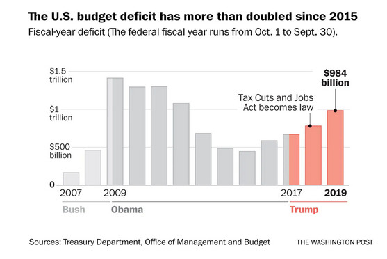 The Washington Post - The U.S. deficit hit $984 billion in 2019, soaring during Trump era