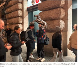 The property caught on camera belongs to the father of the country’s prime minister, Viktor Orbán, offering a glimpse of the staggering wealth amassed by his inner circle, even as most in Hungary have become poorer. References to the zebras – which came from a neighbouring property belonging to Orbán’s best friend and Hungary’s richest man, Lőrinc Mészáros – soon began turning up across the country; plush toys were sold at protests, people posted videos of their own treks to spot the animals, and photos of zebras were plastered over government billboards.
