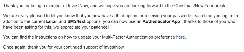 I use the InvestNow platform for part of my investments.