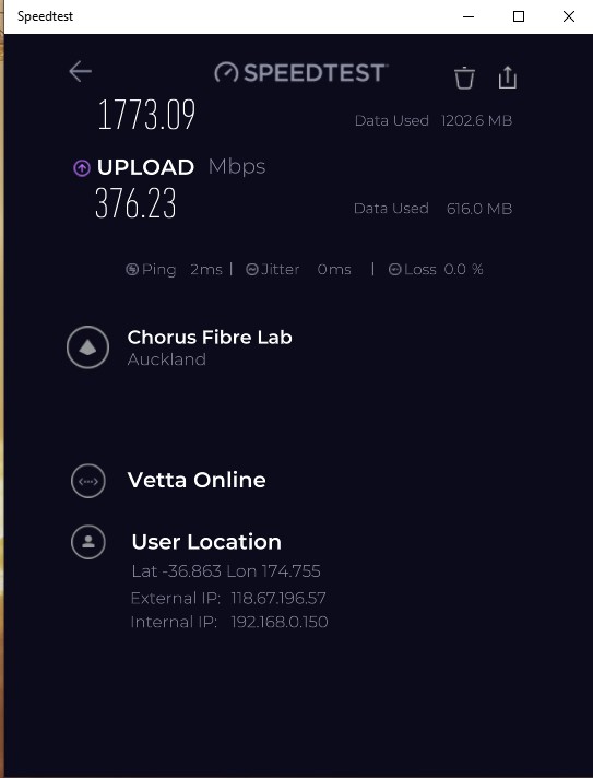 @chriscal My upload has always been sub par. Download is very steady though. See below to Chorus Speedtest. A Speedtest to Quic/Vetta's Auckland Speedtest server is even worse.