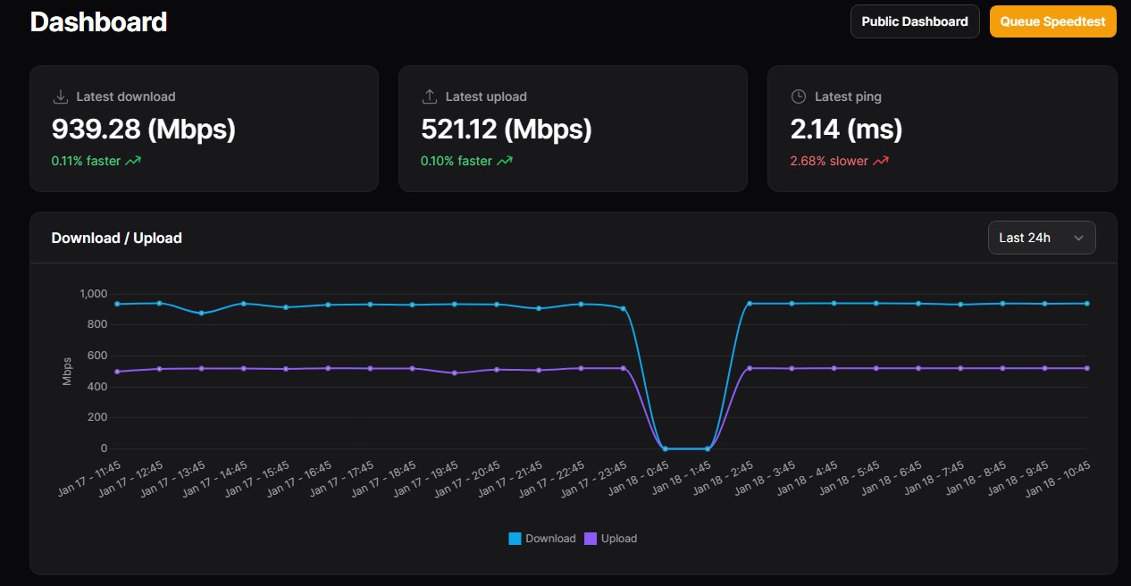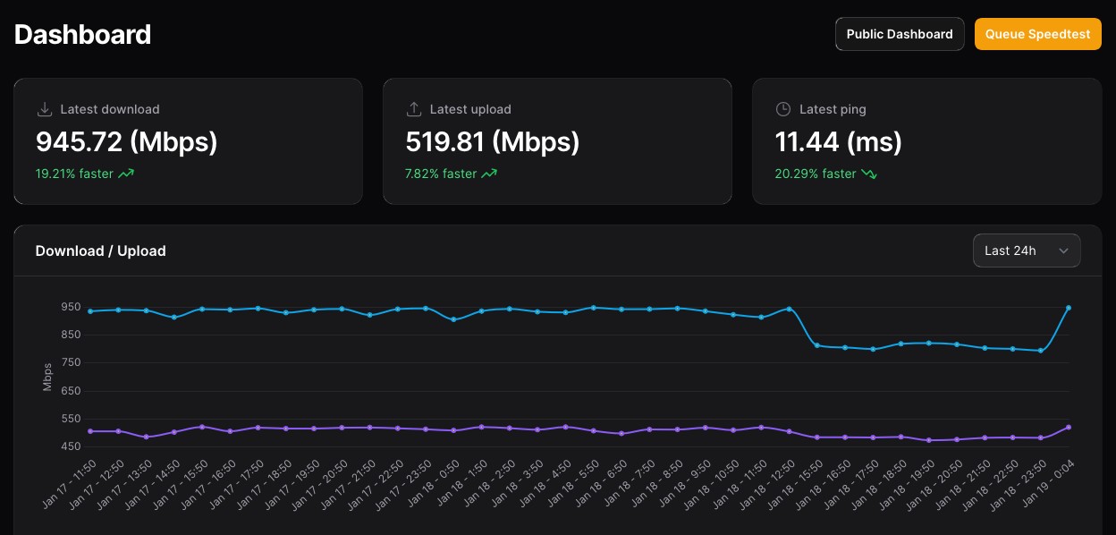 Have just spun up Speedtest Tracker (testing Chorus Fibre Lab once an hour) so will see how that looks after 24 hours.