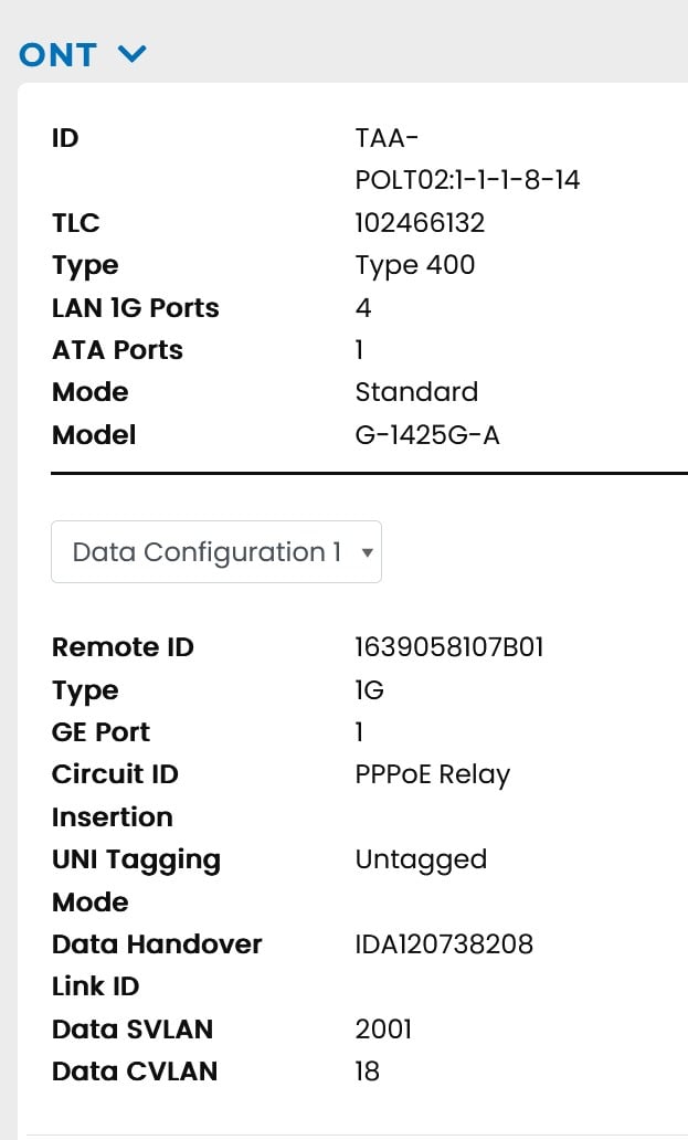 I suspect there may be a provisioning problem (but there is no information presented to support that other than it doesn't work). Below are some pictures that might help confirm what you already seem to know. In the first picture I have a type 400 ONT, with the connection as untagged PPPoE on port 1.
