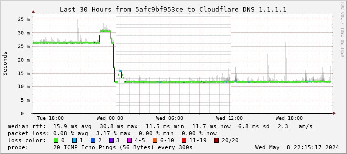 CYaBro: No smokeping graphs here but I can tell you that before midnight last night the UDM SE shows a spike in latency to 1.1.1.1, up from the 26ms it has been since the big outage to 36ms. Looks like it continued for about 30-60 mins.