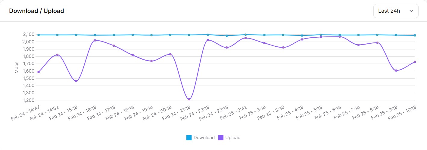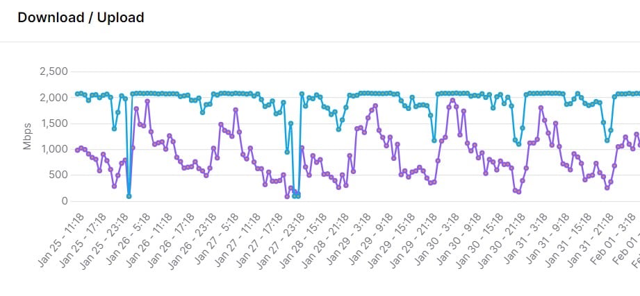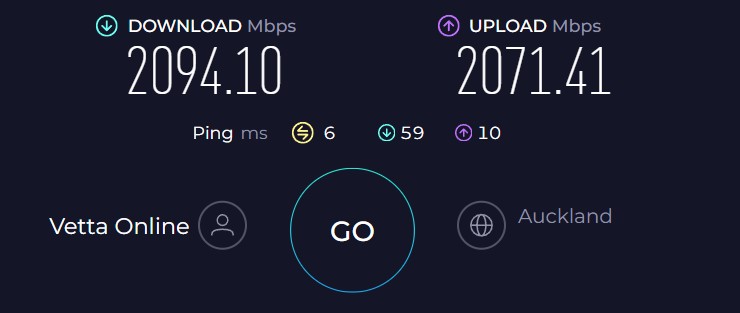 On DHCP/IPOE the best I have recorded is 2094 Mbps Down and 2071 Mbps Up as seen below