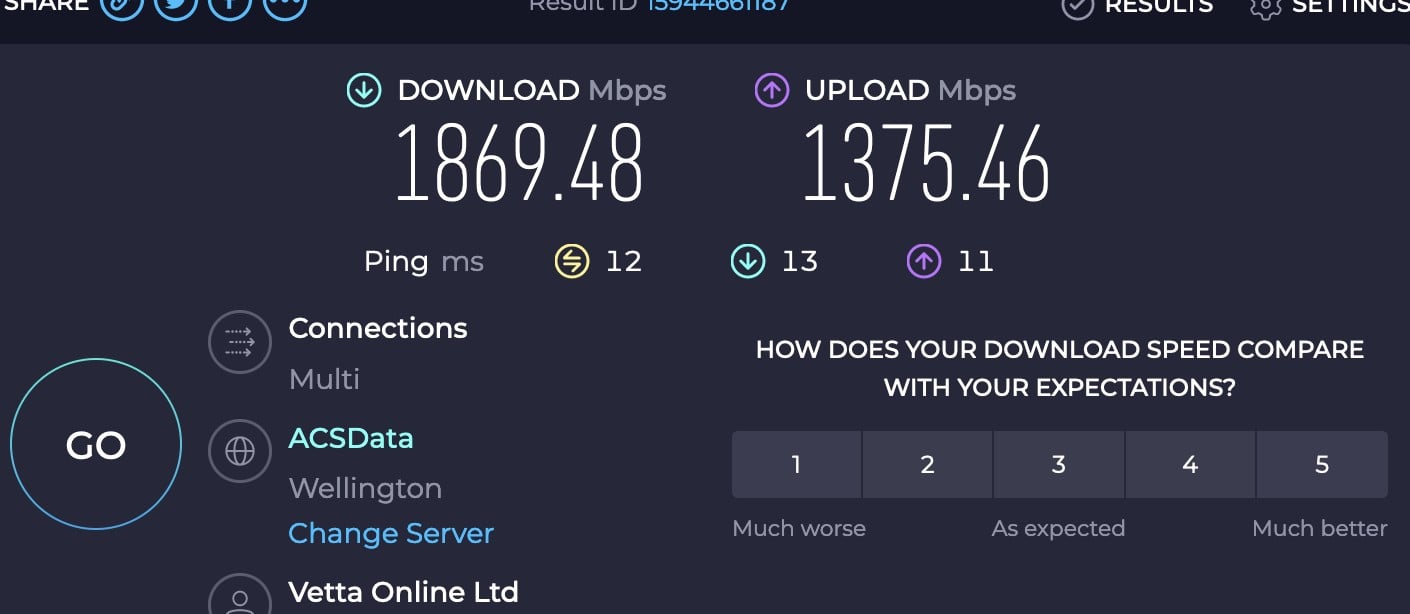 I switched to DHCP, and things seemed to be more stable, but speed results were now ~1300 down / ~2020 up (Chorus Fibre Lab). I reached out to QUIC with this as well as a question about my ONT status being "reduced". and said that given I can see wirespeed upload, that it might be firewall rules. I still see internet disconnections, with the most recent outage being at 8:41pm on the 24th Feb, and then today at 7:14pm.